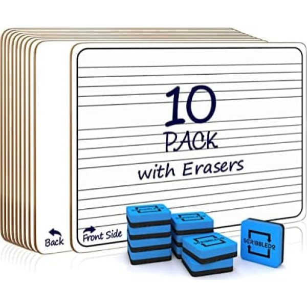 10 x Dry Erase Whiteboards - 9" x 12" - For Writing Music Notes and More (Double Sided Mini Whiteboards) Erasers Included
