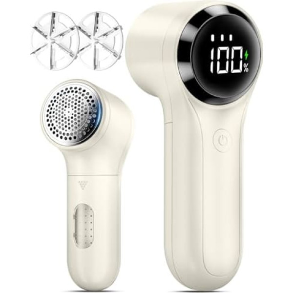 BZGG Electric Lint Shaver, Portable Rechargeable Electric Lint Remover, LED Display, 3 Speeds Adjustable Lint Cutter for Various Fabrics, Beige