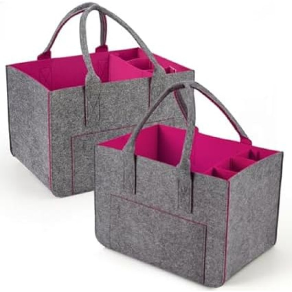 Eurhomewit Felt Shopping Bag with Compartments, Felt Bag, Large 30 L, Foldable and Robust Felt Shopping Baskets, Bottle Bag, Firewood Bag, Clothes Basket, Toy Bag, Magenta/2 Pieces