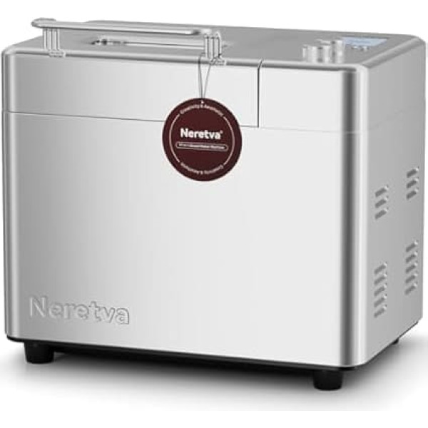 Neretva Bread Maker, 17 Programmes & 2.2 LB Large Capacity Bread Machine with Double Heating, Automatic Nut & Fruit Dispenser and Ceramic Non-Stick Mould for Gluten-Free Bread, Dough, Sourdough