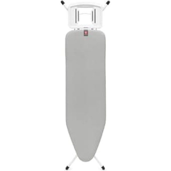 ALWAYS POPULAR DESIGN Find out why this is the most popular Brabantia ironing board. With its generous surface area of 124 x 38 cm, it is perfect for comfortable and efficient ironing in everyday life and is therefore very popular in many households. Stable, safe, ergonomic: the solid four-legged steel frame (22 mm diameter) with robust non-slip protective caps ensures tilt-proof work. The ideal, back-friendly working height (69-96 cm) can be easily adjusted. A child lock and a transport lock increase safety. FLEXIBLE FOR ALL USERS: The sturdy, solid steam iron rest is designed for both left and right handed users and can accommodate steam irons up to 15cm wide. So you can safely place your hot iron during use. Superior ironing surface: the cover made from 100% Fairtrade certified cotton in a \
