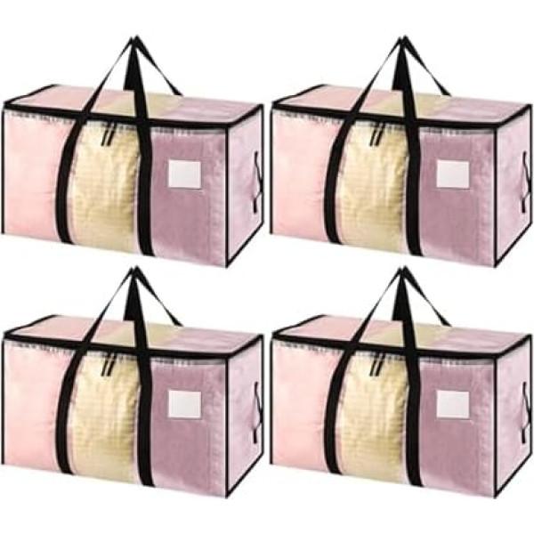 Dntorx Pack of 4 90L Large Storage Bags with Lid, Transparent Moving Boxes Large with Zippers Handle Clothes Storage Moving Bags for Moving Camping Bed Linen Clothing Storage