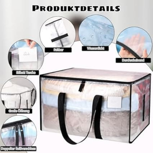 90 L large capacity: the large moving box is about 69 x 35.5 x 38 cm / 27 x 14 x 15 inches, which can be used to store bedding, clothes, quilts, shoes, toys. Each storage bag can hold a maximum of 50 pounds and holds 90 litres. PP fabric material: the underbed storage box with lid is made of PP fabric material. Compared to non-woven fabrics, it is more durable and has stronger load capacity. The storage bag is good for storing bedding, clothes and other items in closets, under beds, wardrobes, attics and other places. Transparent design: the storage boxes with lid storage clothes have a transparent design that makes it easier to view the items and facilitates access to the items during use, which can save your time. Sturdy handles and zip: the moving boxes have sturdy handles and zip that make it easier to move and access items. The underbed storage is not easy to tear and can also be stacked in the cabinet to save space. With flap window: the foldable duvet storage bag with flap window offers plenty of space and is an indispensable storage bag for home, moving and travel. You can write the stock type of items on the card to facilitate classification and search, thus reducing search time and saving space. › See more product details