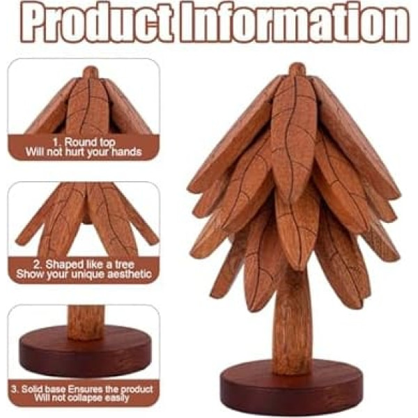 The package includes: there is 1 set of hot dish, which consists of 4 pieces of insulation bites, 1 piece clip and 1 piece of base plate, which you can use in daily life, and it is also a good decoration. Fantastic Design This hot dish adopts the design of textured leaf pattern, which is beautiful and fashionable, and the whole tree-like design is more conducive to your storage, and also looks more beautiful and elegant. Practical tools: the design of the wood material makes our hot dish better insulated and can hold most high-temperature kitchen utensils after cooking.The quantity is enough to hold multiple elements at the same time. VERSATILE With our collider, you can place almost all kitchen tools such as hot dishes, pots, bowls, teapots and pans etc. It is a good tool in our daily life. Size: the diameter of a hot dish tripod is about 20 cm, which is compatible with the sizes of most kitchen utensils. When not in use, you can simply place it in the holder, which is very convenient. › See more product details; Product description Specification: Main colour: wood colour. Material: wood. Product size: wooden coaster: 20cm diameter Cylinder: 22.5 x 9.8 cm. Packaging details: 4 x tree shaped coasters. 1 x holder. 1 x round base. Note: Due to manual measurement, size and weight may have a certain error. Due to the differences between different monitors, there may be slight colour differences.; Product description Specification: Main colour: wood colour. Material: wood. Product size: wooden coaster: 20cm diameter Cylinder: 22.5 x 9.8 cm. Packaging details: 4 x tree shaped coasters. 1 x holder. 1 x round base. Note: Due to manual measurement, size and weight may have a certain error. Due to the differences between different monitors, there may be slight colour differences.; Specification: Main colour: wood colour. Material: wood. Product size: wooden coaster: 20cm diameter Cylinder: 22.5 x 9.8 cm. Packaging details: 4 x tree shaped coasters. 1 x holder. 1 x round base. Note: Due to manual measurement, size and weight may have a certain error. Due to the differences between different monitors, there may be slight colour differences.