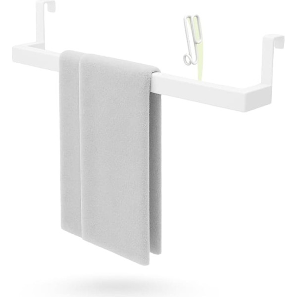 DEELIA Tea Towel Holder Kitchen | Towel Holder No Drilling Required for Hanging on Kitchen Cabinet | Includes 4 Hooks | Towel Holder White, Stainless Steel