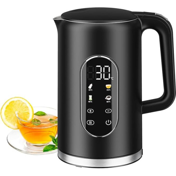 Protect the health of you and your family: our water kettle is double-walled construction, equipped with a food grade inner housing made of 304 stainless steel, and an outer layer heat-resistant PP (polypropylene) BPA-free material, durable and dirt-repellent, safe and healthy. All areas where this kettle comes into contact with water are premium materials to preserve natural flavours and avoid flavour contaminants. So the health of you and your family is better protected Multifunctional: kettle, coffee maker and tea maker in one. Our stainless steel kettle is powered by 2000 W and boils a full pot of 1.7 litres of water in a short time. Without long waiting times, you can easily and quickly prepare coffee, tea or other hot drinks for your family or friends with the kettle Temperature control and keep warm function with LED display: digital controller with variable temperature options for different types of tea and coffee via the button. Your water can be ready at the desired temperature whenever you need it. The temperature is sensitively adjustable in 5° increments in the range of 40° to 100°. With warming function. Once you have activated the keep warm function for the kettle, the kettle keeps the water at the selected temperature. The standard time to keep the water warm is 2 hours Safety auto-off and dry running protection: this electric kettle is equipped with auto-off function and dry running protection. It switches off by itself when the pot has reached its boiling temperature and switches off the heating element when there is no water in the kettle Elegant appearance and 1.7 litres. Large capacity: the stainless steel kettle looks stunning and the modern design makes it even more attractive. Intelligent temperature settings for versatile applications. 1.7 L large capacity is enough to provide the whole family with hot water for a day. Note: To remove limescale deposits on the heating element, we recommend boiling vinegar or lemon juice mixed with water. Do not scratch the walls and the stainless steel heating plate › See more product details