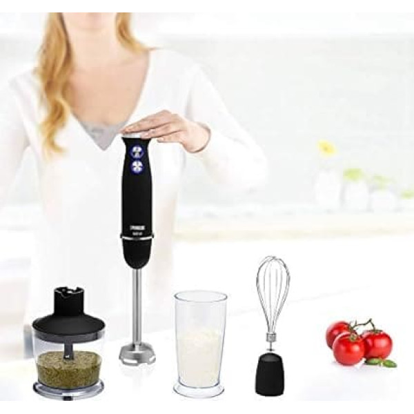 Puree, mix or chop, with the practical Princess hand blender set, you can do all these things and save yourself additional devices The hand blender attachment is ergonomically shaped and equipped with a rotary knob with which you can freely adjust the mixing speed The motor of the hand blender set has a power of 800 watts. The hand blender attachment made of robust stainless steel is equipped with four stainless steel blades, thanks to which you can quickly and easily puree soups, sauces and even smoothies. The chopping and chopping attachment has two stainless steel knives and is ideal for chopping herbs and nuts The set also includes a whisk and a mixing container with a capacity of 700 ml The removable parts of the hand blender set are dishwasher safe and can be easily cleaned › See more product details