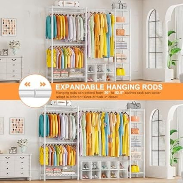 KZOBYD Extendable Clothes Rails, Heavy Duty Clothes Rack, Metal Coat Rack for Hanging Clothes, Wardrobe, Wardrobe, Coat Rack with Adjustable Shelves and