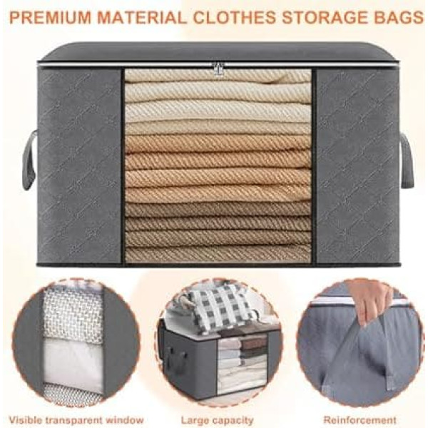 【Hochwertige Materialaufbewahrungstasche】Die Aufbewahrungsbeutel bestehen aus hochwertigem, geruchlosem dreilagigem Verbundvlies, der eine hervorragende Unterstützung bietet. Es ist atmungsaktiv und wasserdicht, leicht zu reinigen und kann auch Gerüche in Ihrer Tasche verhindern. Nicht leicht zu reißen, faltbar, wenn nicht in Gebrauch, um mehrere wiederholte Anwendungen zu gewährleisten. 【Geräumige 90 Liter Kapazität】 Jede Aufbewahrungstasche misst 60 x 15,7 x 13,7 Zoll (60 cm x 40 cm x 35 cm) und kann Kleidung, Bettdecke, Bettwäsche, Decken, Kissen, Bettwäsche, Jacken, Kleidung außerhalb der Saison, Spielzeug und andere Haushaltsgegenstände aufnehmen, die Sie nicht häufig verwenden. 【Langlebige und verstärkte Griffe】Unsere Kleideraufbewahrungstaschen sind mit doppellagigen verstärkten Griffen ausgestattet, um maximale Festigkeit und Komfort zu gewährleisten. Sie können schwere Kleidungsaufbewahrungsboxen beruhigt bewegen, da das Griffdesign schweren Gegenständen standhält, ohne leicht zu reißen. 【Transparentes Fenster】 Gepaart mit hochwertigen Doppelreißverschlüssen ermöglicht das transparente Fenster es Ihnen, die aufbewahrten Gegenstände auf einen Blick leicht zu sehen und darauf zuzugreifen. Wenn in Gebrauch, auch wenn sich viele Gegenstände in der Tasche befinden, kann sie leicht gleiten und schließen. 【Multifunktionalität】Kleidungsaufbewahrungsräume können für Kleiderschränke oder Garderoben verwendet werden, was sie zu einer großartigen Wahl für Schlafzimmer macht. Sie sind nur Stoffbeutel ohne Metallstütze im Inneren, wodurch sie leicht in Schubladen oder Schränke gefaltet werden können, um Platz zu sparen › See more product details; Product description Produktmerkmale: 1. Doppelreißverschluss. Das Design mit doppeltem Reißverschluss kann effektiv verhindern, dass Ihre Gegenstände durch Staub und Schmutz, Insekten, Feuchtigkeit und mehr beeinträchtigt werden. 2. Großes Sichtfenster Das breite und klare Sichtfenster vorne ist praktisch für eine schnelle Betrachtung und einfaches Auffinden des gewünschten Artikels. 3. Verstärken Sie den Griff. Der Griff ist mit zwei Schichten dickem Stoff genäht, um seine Tragfähigkeit zu verbessern. Die Größe jeder 90L Kleidungsaufbewahrungsbox beträgt 60 x 40 x 35 cm. Bietet Platz für saisonale Kleidung, Decken, Daunendecken, Daunenjacken, Pullover, Kissen, Spielzeug usw. Diese 90-Liter-Aufbewahrungsboxen für Kleidung sind geschickt entworfen, um leicht in Schubladen zu falten und so Platz zu sparen. Geräumiger Innenraum mit mehreren Fächern für einfache Organisation. Robuster Griff, leicht zu tragen. Transport – Reißverschluss, sichere Aufbewahrung und Staubschutz; Product description Produktmerkmale: 1. Doppelreißverschluss. Das Design mit doppeltem Reißverschluss kann effektiv verhindern, dass Ihre Gegenstände durch Staub und Schmutz, Insekten, Feuchtigkeit und mehr beeinträchtigt werden. 2. Großes Sichtfenster Das breite und klare Sichtfenster vorne ist praktisch für eine schnelle Betrachtung und einfaches Auffinden des gewünschten Artikels. 3. Verstärken Sie den Griff. Der Griff ist mit zwei Schichten dickem Stoff genäht, um seine Tragfähigkeit zu verbessern. Die Größe jeder 90L Kleidungsaufbewahrungsbox beträgt 60 x 40 x 35 cm. Bietet Platz für saisonale Kleidung, Decken, Daunendecken, Daunenjacken, Pullover, Kissen, Spielzeug usw. Diese 90-Liter-Aufbewahrungsboxen für Kleidung sind geschickt entworfen, um leicht in Schubladen zu falten und so Platz zu sparen. Geräumiger Innenraum mit mehreren Fächern für einfache Organisation. Robuster Griff, leicht zu tragen. Transport – Reißverschluss, sichere Aufbewahrung und Staubschutz; Produktmerkmale: 1. Doppelreißverschluss. Das Design mit doppeltem Reißverschluss kann effektiv verhindern, dass Ihre Gegenstände durch Staub und Schmutz, Insekten, Feuchtigkeit und mehr beeinträchtigt werden. 2. Großes Sichtfenster Das breite und klare Sichtfenster vorne ist praktisch für eine schnelle Betrachtung und einfaches Auffinden des gewünschten Artikels. 3. Verstärken Sie den Griff. Der Griff ist mit zwei Schichten dickem Stoff genäht, um seine Tragfähigkeit zu verbessern. Die Größe jeder 90L Kleidungsaufbewahrungsbox beträgt 60 x 40 x 35 cm. Bietet Platz für saisonale Kleidung, Decken, Daunendecken, Daunenjacken, Pullover, Kissen, Spielzeug usw. Diese 90-Liter-Aufbewahrungsboxen für Kleidung sind geschickt entworfen, um leicht in Schubladen zu falten und so Platz zu sparen. Geräumiger Innenraum mit mehreren Fächern für einfache Organisation. Robuster Griff, leicht zu tragen. Transport – Reißverschluss, sichere Aufbewahrung und Staubschutz