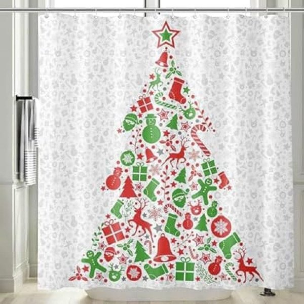 Cheerful Christmas Tree Design - This shower curtain shows a creative Christmas tree made of classic holiday elements in red and green, which will bring a festive and cheerful atmosphere to your bathroom. HIGH QUALITY MATERIAL - Made of durable and water resistant polyester, this shower curtain is not only stylish, but also durable and easy to care for. EASY CARE - The shower curtain is machine washable so it is easy to keep clean and retains its colors even after multiple washes. STANDARD SIZE FOR UNIVERSAL FIT - With its standard dimensions, this curtain fits perfectly on most shower rods and installs effortlessly. PERFECT GIFT IDEA FOR THE CHRISTMAS SEASON - An ideal Christmas gift for family and friends that will bring festive cheer to any bathroom and create a good mood. › See more product details; Product description Cheerful Christmas Tree Design - This shower curtain shows a creative Christmas tree made of classic Christmas elements in red and green, which will bring a festive and cheerful atmosphere to your bathroom. High-quality material - This shower curtain made of durable and water-repellent polyester is not only stylish, but also durable and easy to clean. EASY CARE - The shower curtain is machine washable, so it is easy to keep clean and retains its colours even after multiple washes. Standard size for universal fit - With its standard dimensions, this curtain fits perfectly on most shower rods and is easy to install. Perfect gift idea for the Christmas season - An ideal Christmas gift for family and friends that brings festive joy to any bathroom and ensures a good mood.; Product description Cheerful Christmas Tree Design - This shower curtain shows a creative Christmas tree made of classic Christmas elements in red and green, which will bring a festive and cheerful atmosphere to your bathroom. High-quality material - This shower curtain made of durable and water-repellent polyester is not only stylish, but also durable and easy to clean. EASY CARE - The shower curtain is machine washable, so it is easy to keep clean and retains its colours even after multiple washes. Standard size for universal fit - With its standard dimensions, this curtain fits perfectly on most shower rods and is easy to install. Perfect gift idea for the Christmas season - An ideal Christmas gift for family and friends that brings festive joy to any bathroom and ensures a good mood.; Cheerful Christmas Tree Design - This shower curtain shows a creative Christmas tree made of classic Christmas elements in red and green, which will bring a festive and cheerful atmosphere to your bathroom. High-quality material - This shower curtain made of durable and water-repellent polyester is not only stylish, but also durable and easy to clean. EASY CARE - The shower curtain is machine washable, so it is easy to keep clean and retains its colours even after multiple washes. Standard size for universal fit - With its standard dimensions, this curtain fits perfectly on most shower rods and is easy to install. Perfect gift idea for the Christmas season - An ideal Christmas gift for family and friends that brings festive joy to any bathroom and ensures a good mood.