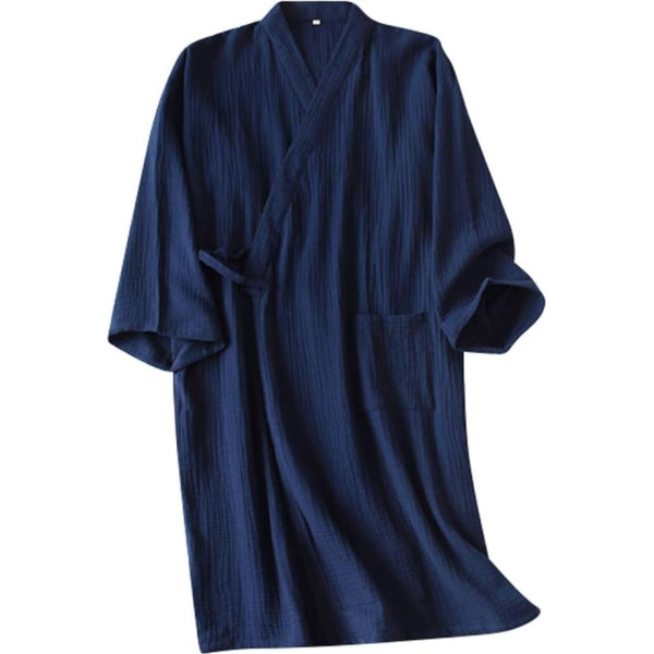 Bathrobe Men Japanese Kimono Robe Yukata Lightweight Sleepwear Soft Cotton Nightdress Nightwear Terry Japanese Clothes Tub Robe Comfortable Lounge Bathrobe