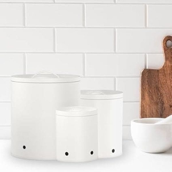 KOOK TIME Potato Storage Box - Set of 3 Storage Potatoes Onions Garlic - Vegetable Storage with Small Ventilation Holes to Ensure Air Circulation Matte White
