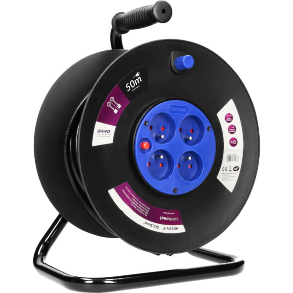 Pagarinātāja kabeļa spole, 4 2P+Z kontaktligzdas, PVC kabelis H05VV-F 3x1.5mm?, garums 50m, termiskais, strāvas ceļa pārsegs.