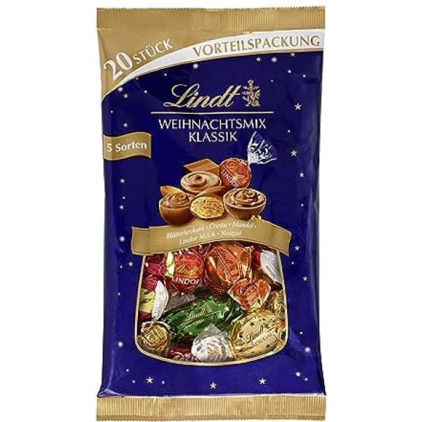 Lindt Chocolate Christmas Mix Classic, 260 g, Baubles in Five Types of Baked Apple, Leaf Crocant, Cresta, Almond, Dark Nougat Balls, Chocolate Gift for Christmas, Christmas Chocolate