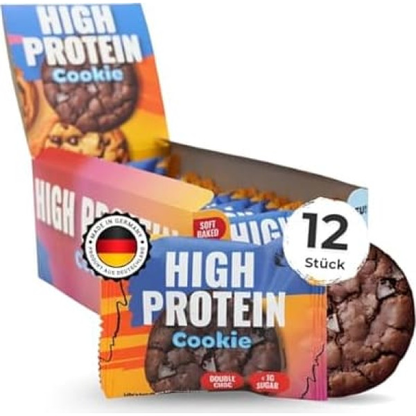 Protein boost with dessert feeling - 12 delicious protein biscuits with chocolate pieces, ideal as a high protein snack for on the go or after training. Delicious enjoyment without sugar - With less than 1g of sugar per bar, our sugar-free protein bars are the perfect snack for a sugar-free diet. High Protein & Low Carb - With 8 g of protein per cookie, they are the perfect post-workout snack or sweet reward in between. Quality from Bavaria - Manufactured to the highest standards, our protein bar offers an optimal ratio of taste and nutritional values. For all chocolate lovers - With extra soft texture and chocolate overload, these protein bars satisfy any craving for sweets without compromising your goals. › See more product details; Product description Product description More taste, less compromise. Fancy sweets without sugar crash? The Hans Brainfood High Protein Cookies are your new favourite snack - protein-rich, sugar-free and irresistibly delicious! With double chocolate enjoyment and soft texture, they satisfy any desire without compromising your goals. Why you'll love them: High Protein & Low Carb - Perfect post-workout snack or sweet reward in between. <1g Sugar & No Additives - Ideal for a sugar-free diet. Extra Soft & Chocolate Overload - For those who love it creamy and chocolate. For those who don't want to compromise - Whether gym advice, office hero or late night craver. Never miss out on dessert again - only without regrets! Ingredients Sweeteners, Directions No special instructions. Just enjoy. See more; Product description Product description More taste, less compromise. Fancy sweets without sugar crash? The Hans Brainfood High Protein Cookies are your new favourite snack - protein-rich, sugar-free and irresistibly delicious! With double chocolate enjoyment and soft texture, they satisfy any desire without compromising your goals. Why you'll love them: High Protein & Low Carb - Perfect post-workout snack or sweet reward in between. <1g Sugar & No Additives - Ideal for a sugar-free diet. Extra Soft & Chocolate Overload - For those who love it creamy and chocolate. For those who don't want to compromise - Whether gym advice, office hero or late night craver. Never miss out on dessert again - only without regrets! Ingredients Sweeteners, Directions No special instructions. Just enjoy. See more; Product description More taste, less compromise. Fancy sweets without sugar crash? The Hans Brainfood High Protein Cookies are your new favourite snack - protein-rich, sugar-free and irresistibly delicious! With double chocolate enjoyment and soft texture, they satisfy any desire without compromising your goals. Why you'll love them: High Protein & Low Carb - Perfect post-workout snack or sweet reward in between. <1g Sugar & No Additives - Ideal for a sugar-free diet. Extra Soft & Chocolate Overload - For those who love it creamy and chocolate. For those who don't want to compromise - Whether gym advice, office hero or late night craver. Never miss out on dessert again - only without regrets! Ingredients Sweeteners, Directions No special instructions. Just enjoy. See more