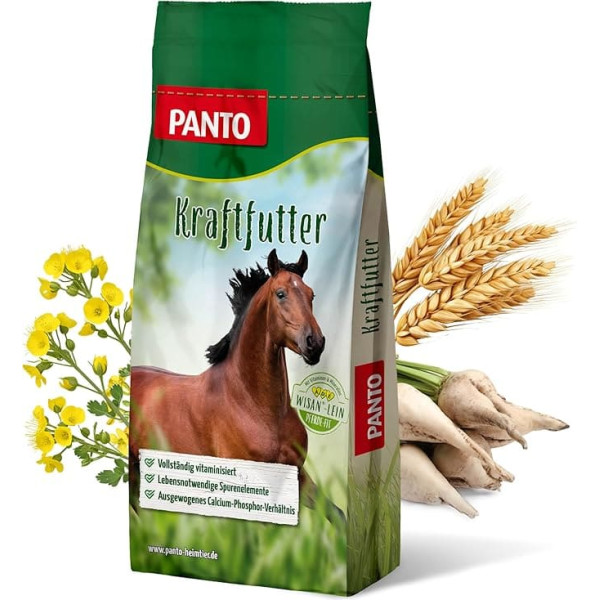 Horse food: PANTO Formula A is our all-rounder for the crib. The pellet feed in 5 mm size can be fed as a complete feed or as a supplementary feed to oats Digestion: due to the heat treatment of the feed, the raw materials are more digestible and tastier, which makes the horse pellets a high feed acceptance even with picky horses Health: Our PANTO horse food contains all important vitamins, minerals and trace elements, so that no further mineral food is necessary if the feeding recommendation is complied with Feeding: The complete food should be distributed over two meals per day. In total, feed 0.5 - 1 kg of horse food per 100 kg body weight per day PANTO: For lively and vital animals. This has been our motto for 30 years. With commitment, competence and responsibility, we develop food formulas for small and large animals › See more product details
