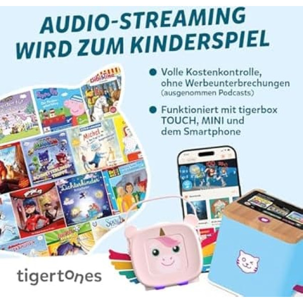 Complete flexibility: the children's music box can be used simultaneously on a tablet, smartphone and up to two tiger boxes. No contract and no subscription – full of listening fun with maximum freedom. CHILD-FRIENDLY SELECTION: Over 30,000 kids-only audio tracks are available. Content can be used with the tigertones app directly via smartphone, tablet or tigerboxes. Individual profiles: Each child only hears their own content – age appropriate, safe and individually matched. So the listening fun remains clearly separated. Safe streaming: In combination with the tigerboxes, tigertones allows you to hear even without a smartphone. Parents create a protected environment, children discover the large radio play world independently. Full variety: all your favourite heroes are included – from Paw Patrol, Bibi & Tina and the three. ?? Kids to Disney, Rolf Zuckowski or DIKKA. Always the latest episodes and content available. › See more product details