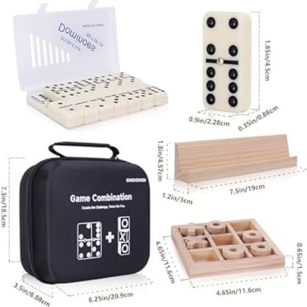 Premium-Spieleset: Das Brettspiel-Set enthält 28 langlebige Steine mit einer stabilen, transparenten Kunststoffbox im Inneren, die sich gut verschließen lässt, um sie sicher aufzubewahren. Es enthält 4 Holzablagen, eine Anleitung und einen praktischen Tragekoffer. Mit dem enthaltenen Tic-Tac-Toe-Spiel ist es ideal für Spieleabende mit der Familie, Reisen oder entspannte Spieleabende. Hochwertige Dominosteine: Die 28 Steine sind aus erstklassigen Materialien gefertigt, liegen schwer in der Hand, sind glatt geschliffen und poliert, was Langlebigkeit garantiert. Die Punkte sind gut lesbar und präzise aufgedruckt und verfügen über einen dekorativen metallenen Mittelpunkt. Tic-Tac-Toe-Set: Dieses Tic-Tac-Toe-Set ist äußerst ansprechend. Es ist sehr robust und sieht edel aus. Das Holz ist glatt und wirkt hochwertiger als Plastik. Die kompakte Größe macht es perfekt, um es überallhin mitzunehmen und zu spielen. Rutschfeste Holzablagen: Die 4 Holzablagen sind eine durchdachte Ergänzung, die helfen, die Steine während des Spiels organisiert zu halten. Sie sind alle sehr glatt und gut verarbeitet und haben Filzgleiter an der Unterseite, um Beschädigungen an Tischen zu verhindern. Robuster und tragbarer Tragekoffer: Der Koffer hat eine Hartschale aus verstärktem Material mit einem stabilen Reißverschluss und einem schlanken Gesamterscheinungsbild. Er hält alles sicher zusammen und ist ideal für die Aufbewahrung und Reisen. › See more product details