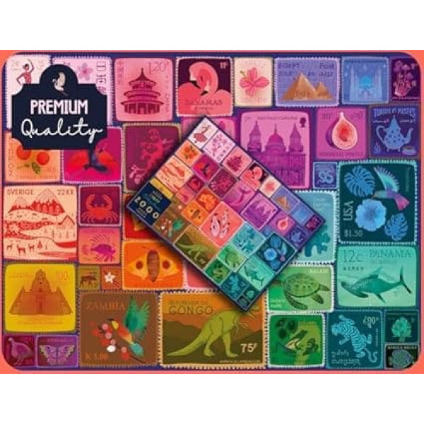 Elena Essex 2000 Piece Jigsaw Puzzles for Adults - Stamp Collection, 2000 Piece Puzzle, Jigsaw Puzzles for Adults 2000, Colourful Rainbow Gradient Puzzle, Size 98x76cm