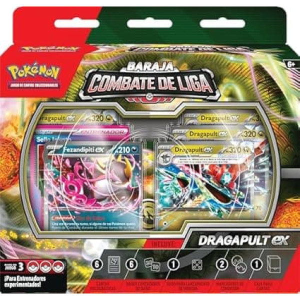 Start the attack with Dragapult ex Includes 1 deck of 60 cards, ready to play with Dragapult ex and Fezandipiti Ex You will also receive 6 dice as damage counters, 1 cube for throwing coins, 2 coins as condition markers, 1 card box, 1 strategy sheet and 1 code card to play with this online deck With the ideal combination of Pokémon and trainer cards, this League Combat Deck combines all the elements that will help you with your next game! Perfect for experienced players › See more product details