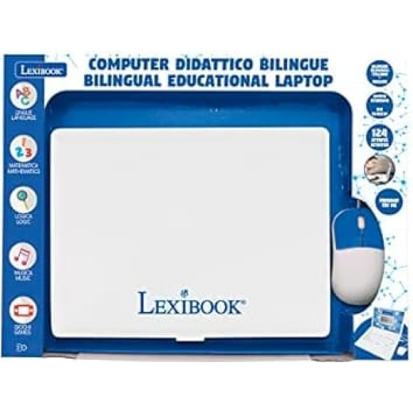 Educational activities: Italian and English, mathematics, dactylography, general knowledge, logic, music, clock reading. TEST THE KNOWLEDGE Fun activities with different levels to learn, test and improve one's knowledge. Games – Fun games for testing logic, memory and speed after learning. GREAT DESIGN - Ergonomics inspired by real laptops, with a realistic mouse and keyboard. Sleek, elegant design. Convenient size for easy grip. Music and Melodies - Musical activities for the first step in music (learning notes, composing and playing melodies) Graphical Effects - LCD screen with animations. Hours of fun. - Computer keyboard to answer the questions and play the games. Language: letters, words, typing and spelling. MATHEMATICS - Numbers and calculation (4 operations) Show More › See more product details