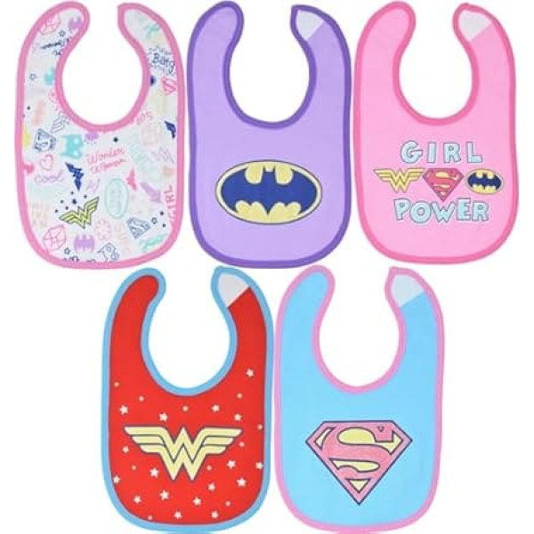 DC Comics Justice League Baby Girls' Bibs Wonder Woman Supergirl Batgirl Pack of 5