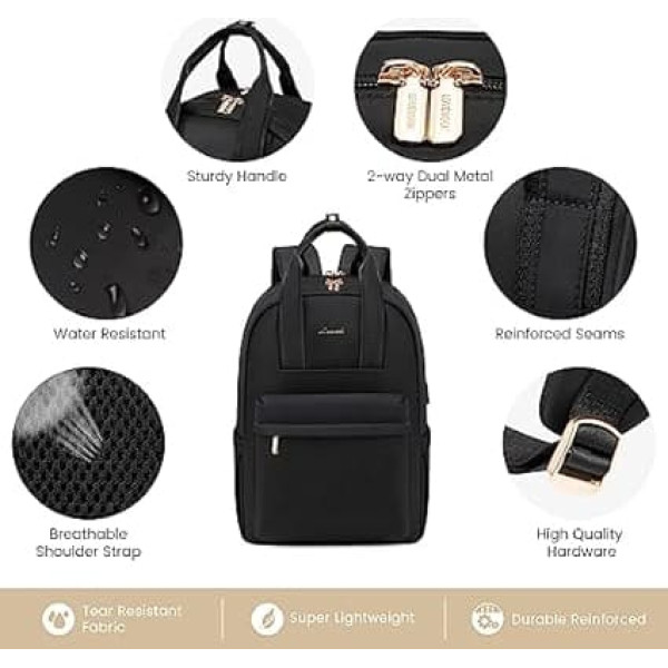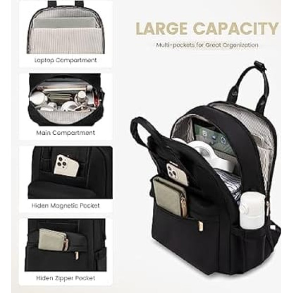 LOVEVOOK Backpack Women's Laptop Backpack Large Waterproof School Backpack Teenager Girls with Laptop Compartment Elegant School Bag Daypack for School University Travel Work, A-Black, 15.6 inches