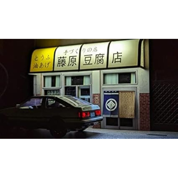 1/32 Scale LED Fujiwara Toufu Store Scene Model Car Acrylic Display Case with AE86 Diecast Car Model JDM Car Model Display Box