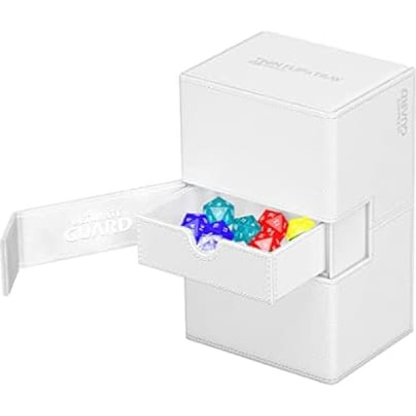 Ultimate Guard Twin Flip`n`Tray 160+ XenoSkin Monocolor White Designed for up to 160 (double-sleeved) or 200 (single-sleeved) standard size cards in Ultimate Guard sleeves Removable card and accessory compartments Independent access to each compartment Plain design with high quality microfiber interior › See more product details; Product description Product Description One box, two decks of cards and an additional accessory compartment: our Twin Flip'n'Tray 160+ combines all the features a great deck box needs. It doubles the size of our classic Flip'n'Tray 80+ and is the big sibling everyone wants. The Twin Flip'n'Tray 160+ offers space for 160 double-sleeved cards or 200 single-sleeved cards in standard size*. - Designed for up to 160 (double-sleeved) or 200 (single-sleeved) standard size cards in Ultimate Guard Sleeves* - Removable card and accessory compartments - Independent access to each compartment - Durable Xenoskin material - Plain design with high-quality microfibre interior - Strong magnetic closure Dimensions approx. : 113 x 90 x 176 mm. Card compartment (2x) (inner dimensions) approx. : 99 x 62 x 79 mm card drawer (2x) (inner dimensions) approx. : 56 x 72 x 59 mm cube compartment (inner dimensions): approx. : 100 x 34 x 81 mm cube drawer (inner dimensions): approx. : 91 × 27 × 70 mm * Designed for Ultimate Guard sleeves. Card sleeves from other manufacturers may affect capacity and/or compatibility Safety Warning No safety warning; Product description Product Description One box, two decks of cards and an additional accessory compartment: our Twin Flip'n'Tray 160+ combines all the features a great deck box needs. It doubles the size of our classic Flip'n'Tray 80+ and is the big sibling everyone wants. The Twin Flip'n'Tray 160+ offers space for 160 double-sleeved cards or 200 single-sleeved cards in standard size*. - Designed for up to 160 (double-sleeved) or 200 (single-sleeved) standard size cards in Ultimate Guard Sleeves* - Removable card and accessory compartments - Independent access to each compartment - Durable Xenoskin material - Plain design with high-quality microfibre interior - Strong magnetic closure Dimensions approx. : 113 x 90 x 176 mm. Card compartment (2x) (inner dimensions) approx. : 99 x 62 x 79 mm card drawer (2x) (inner dimensions) approx. : 56 x 72 x 59 mm cube compartment (inner dimensions): approx. : 100 x 34 x 81 mm cube drawer (inner dimensions): approx. : 91 × 27 × 70 mm * Designed for Ultimate Guard sleeves. Card sleeves from other manufacturers may affect capacity and/or compatibility Safety Warning No safety warning; Product Description One box, two decks of cards and an additional accessory compartment: our Twin Flip'n'Tray 160+ combines all the features a great deck box needs. It doubles the size of our classic Flip'n'Tray 80+ and is the big sibling everyone wants. The Twin Flip'n'Tray 160+ offers space for 160 double-sleeved cards or 200 single-sleeved cards in standard size*. - Designed for up to 160 (double-sleeved) or 200 (single-sleeved) standard size cards in Ultimate Guard Sleeves* - Removable card and accessory compartments - Independent access to each compartment - Durable Xenoskin material - Plain design with high-quality microfibre interior - Strong magnetic closure Dimensions approx. : 113 x 90 x 176 mm. Card compartment (2x) (inner dimensions) approx. : 99 x 62 x 79 mm card drawer (2x) (inner dimensions) approx. : 56 x 72 x 59 mm cube compartment (inner dimensions): approx. : 100 x 34 x 81 mm cube drawer (inner dimensions): approx. : 91 × 27 × 70 mm * Designed for Ultimate Guard sleeves. Card sleeves from other manufacturers may affect capacity and/or compatibility Safety Warning No safety warning