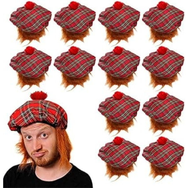 Tam-O-SHANTER Scottish Hat with Orange Attached Hair Pack of 12