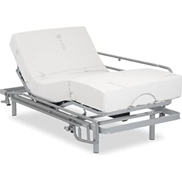 Gerialife - Electrically Adjustable Slatted Frame | Orthopaedic Mattress 20 cm Visco Tencel (80 x 200, Wireless Control + Railing)
