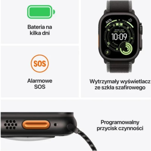 Pulkstenis ultra 3 gps + mobilais, 49 mm titāna apvalks dabīgā krāsā, zilā/spilgti zilā trail josla - izmērs s/m