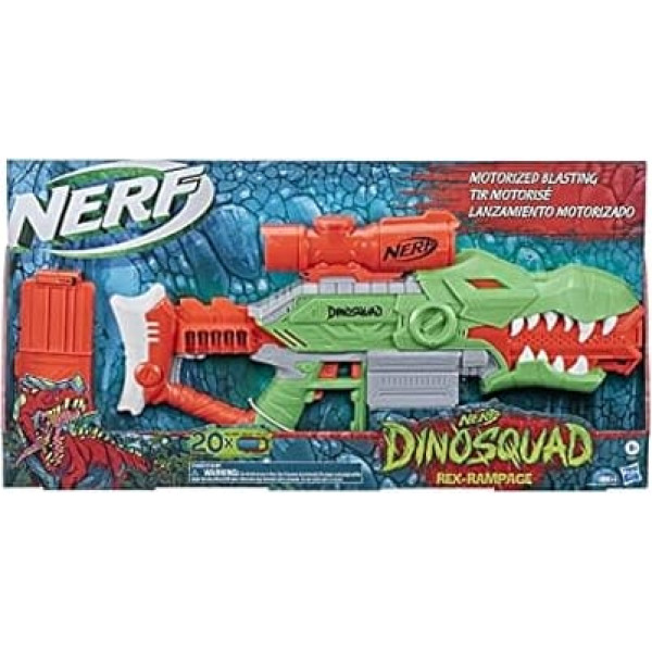 Product description NERF DinoSquad Rex-Rampage Motorised Dart Blaster, 10-Dart Clip, 20 Official Darts, 10-Dart Storage- T-Rex Dinosaur Design, Red; Product description NERF DinoSquad Rex-Rampage Motorised Dart Blaster, 10-Dart Clip, 20 Official Darts, 10-Dart Storage- T-Rex Dinosaur Design, Red; NERF DinoSquad Rex-Rampage Motorised Dart Blaster, 10-Dart Clip, 20 Official Darts, 10-Dart Storage- T-Rex Dinosaur Design, Red