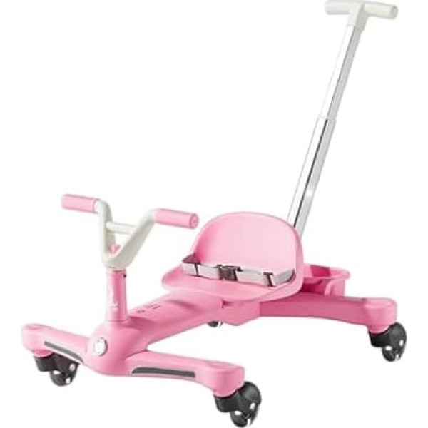 Children's Push Car with Push Bar & Adjustable Seat, Swing Car Function, 360° Rotatable, Seat Belt, Slide & Push Vehicle for Boys and Girls from 2 Years (Pink)