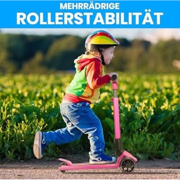 Sturdy children's scooter from 2 years with 3 wheels - The safe children's scooter from 2 years is suitable for small riders; the 3-wheel construction ensures stability, while the lightweight aluminium frame allows easy handling; as a scooter children 2 years or children's scooter from 3 years LED light wheels for more driving fun - The city scooter children inspires with LED wheels that automatically light up when moving - without batteries; a practical gift as a children's scooter from 4 years or scooter children 5 years for indoor and outdoor use Height-adjustable handlebars - Grows with the child - The scooter has a height-adjustable handlebar (68.5 cm - 80.5 cm) and ergonomic handles; so the children's scooter is suitable for different ages, from children's scooters for toddlers to city scooter for older children Easy control with Lean-to-Star technology - The micro scooter allows intuitive steering through weight shift thanks to Lean-to-Steer technology; promotes balance and motor skills - suitable as a micro scooter for children aged 3 and over Foldable design - For on the go - The foldable children's scooter can be stored compactly with a simple folding mechanism; suitable for transport, whether as a scooter for the way to school or as a compact children's scooter from 4 years for on the go › See more product details