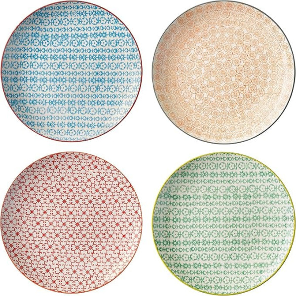 Dimensions: diameter 25 cm, set of 4 From the Carla Express collection by Bloomingville Material: ceramic, dishwasher-safe, microwave-safe Food safe, handmade stamp decoration. Slight irregularities make for a special charm Create an atmospheric ambience to find peace and serenity with the stylish items from Bloomingville › See more product details; Product description Discover the charming Carla Express dinner plates from Bloomingville, a set of 4 round plates with a diameter of 25 cm. These multicolor plates with stamped decoration will bring an atmospheric atmosphere to your table, suitable for pasta and salad. Made from ceramic, they are dishwasher and microwave safe and have a slight irregularity that creates a special charm. They have dimensions of 25 cm in diameter and 12.5 cm in width and are easy to care for in the washing machine.; Product description Discover the charming Carla Express dinner plates from Bloomingville, a set of 4 round plates with a diameter of 25 cm. These multicolor plates with stamped decoration will bring an atmospheric atmosphere to your table, suitable for pasta and salad. Made from ceramic, they are dishwasher and microwave safe and have a slight irregularity that creates a special charm. They have dimensions of 25 cm in diameter and 12.5 cm in width and are easy to care for in the washing machine.; Discover the charming Carla Express dinner plates from Bloomingville, a set of 4 round plates with a diameter of 25 cm. These multicolor plates with stamped decoration will bring an atmospheric atmosphere to your table, suitable for pasta and salad. Made from ceramic, they are dishwasher and microwave safe and have a slight irregularity that creates a special charm. They have dimensions of 25 cm in diameter and 12.5 cm in width and are easy to care for in the washing machine.