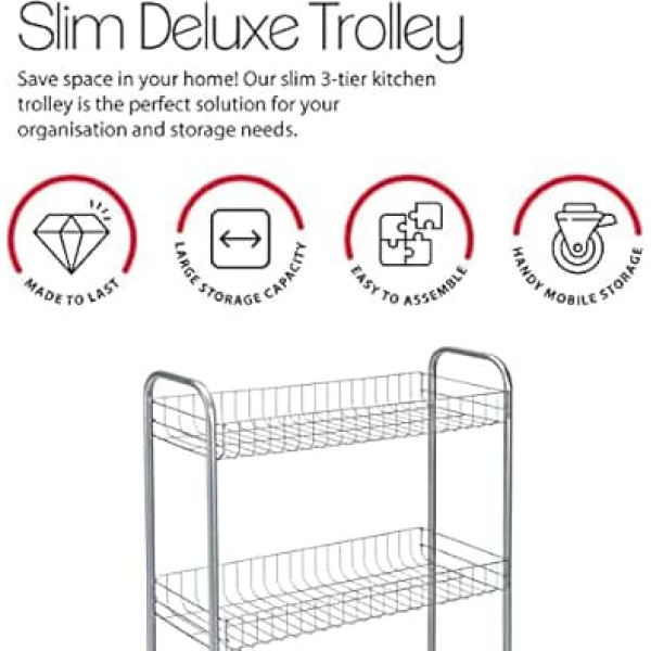Metaltex 341503039 All-Purpose Trolley 56 x 23 x 84 cm 3 Levels Slim Deluxe Polytherm