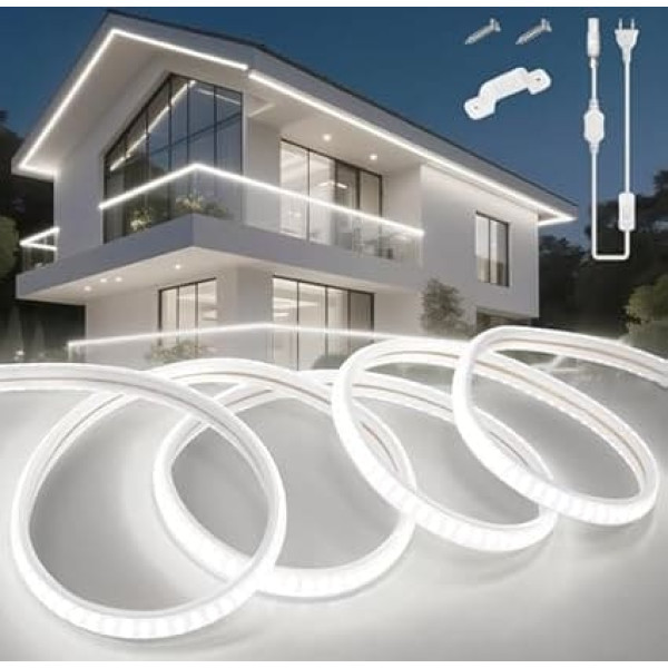 KSIBNW LED Strip Outdoor 20 m, 230 V Neon LED Strip Waterproof IP65 Tube White 6000 K LED Strip Flexible Outdoor 145 LEDs/M Light Strip with Power Supply and Plug for Outdoor Indoor Decoration