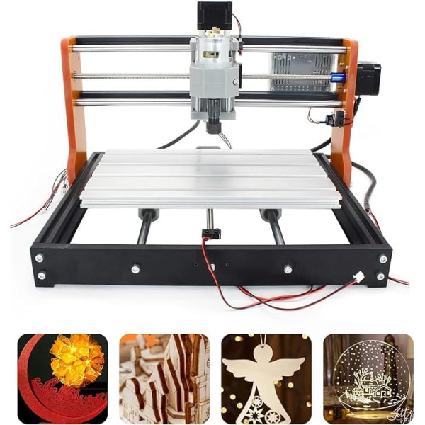 Note: This is a 3018 Pro-N in the basic equipment, the laser is not included. Please contact customer service if you have any questions during installation, we can provide you with an assembly video Package includes: 1 x 3018 Pro engraving machine with limiter and emergency stop function (accessories as shown include 4G USB flash drive, user manual and GRBL software, instructions and software are stored on USB), working area 30 x 18 x 45 cm, housing dimensions 42 x 35 x 27 cm. Basic parameters: 775 spindle motor (12-36 V) 24 V, 10,000 rpm; Nema 17 stepper motor, rated current 1.3 A, holding torque 0.25 Nm, phase resistance 2.1 ohm. Engraving machine supports Windows XP, Windows 7, Windows 8, Windows 10 (32/64), cannot support Windows 11 (32/64 bit) and Linux. The machine cannot work with Apple products. ✅【Updated Version】- Optimised version of CNC 3018 Pro, which adds emergency stop button and limit switch functions. We have updated the appearance. The two sides of the Y-axis are replaced by orange bakelite resin plates, the solid outer frame is made of resin, the work table is made of aluminium alloy and the screw material is made of stainless steel, making the machine lighter and lighter durable. GRBL control board: (1) The GRBL board supports emergency stop and X/Y/Z axis limitation functions, which can be used together with the emergency stop button and limit switch on the engraving machine to ensure a safe and easy working environment. (2) Other functions and functions such as: maximum support for 2000 rpm spindles, tool setting (probe), offline controller, with power switch and silent fan cooling. › See more product details