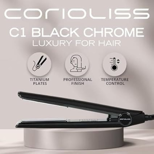 Corioliss C1 | Hair Straightener for Women | Titanium Plates and Curling for Fine Hair | Professional Iron with Temperature Control (Black Soft Touch Chrome)