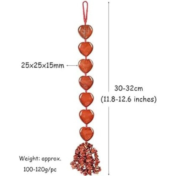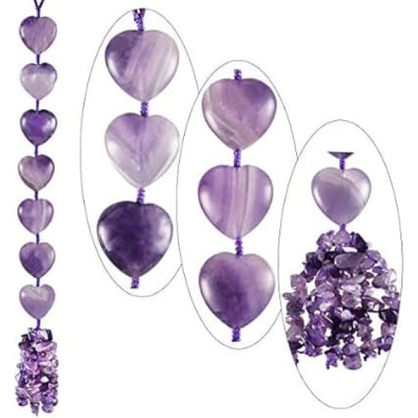 Material: Amethyst puff heart stone and chip stones, braided by nylon rope. Each stone is different in color, veins, shape and size as handmade cutting and polishing. You will receive a similar item as shown in the pictures. Feng Shui Crystal Ornaments (approx.) - Total length: 30-32 cm; Hanging rope size: 8-9 cm in circumference; Puff heart stone size: 25 mm in length and width, 15 mm in thickness; Chip stones: 5-15 mm; Weight: 100-120 g/piece; Package Content: 1 piece. x Hanging Heart Stone Ornament, 1 x Brand Gift Bag, 1 x Gift Box DECORATIVE STONE HANGING ORNAMENT - This crystal stone hanging ornament is made in two parts. There are 7 heart stones strung with a braided nylon rope at the top, and hanging under the heart is a split stone tassel. Can be hung on window, wall, porch, balcony, patio or Christmas tree. Meanwhile, it can also be hung on the car, bag or suitcase to absorb energy for you on the road. 7 Chakra Hanging Ornaments - This chakra ornament is designed to realign and balance the energy fields of each specific chakra, so that the mind, body and soul are aligned and harmonized. It helps relieve stress, remove blocks and a general feeling of better health, joy and abundance. PERFECT GIFT - This crystal hanging ornament is so colorful that your room, porch, window or car will be brighter. It can absorb positive energy from nature to protect and balance your chakra at any time while bringing happiness, happiness and happiness. It is a meaningful gift for someone you loved and treasured no matter where you are. Comes with a gift bag and a gift box, convenient for preserving or giving as a gift. › See more product details; Product description Nupuyai Crystal Stone Hanging Ornament is designed to protect and balance your chakra at all times while bringing happiness, joy and happiness. Can be hung on windows, walls, porches or Christmas tree. Meanwhile, it can also be hung on the car, bag or suitcase to absorb energy for you on the road. You will feel better and happy with your own chakra hanging ornament. It is also a meaningful gift for someone you loved and treasured no matter where they are. Dimensions: approx. - Total length: 30-32cm Hanging rope size: 8-9cm in circumference. Heart stone size is 25mm long and 15mm thick. Chip Stone 5-15mm Weight:100-120g/pcs Box contents: 1 x heart stone hanging ornament, 1 x branded gift bag, 1 x gift box. Comes with a gift bag and a gift box, convenient for preserving or gifting. Note: These crystal stones are different in color, veins, shape and size. You will receive a similar item as shown in the pictures.; Product description Nupuyai Crystal Stone Hanging Ornament is designed to protect and balance your chakra at all times while bringing happiness, joy and happiness. Can be hung on windows, walls, porches or Christmas tree. Meanwhile, it can also be hung on the car, bag or suitcase to absorb energy for you on the road. You will feel better and happy with your own chakra hanging ornament. It is also a meaningful gift for someone you loved and treasured no matter where they are. Dimensions: approx. - Total length: 30-32cm Hanging rope size: 8-9cm in circumference. Heart stone size is 25mm long and 15mm thick. Chip Stone 5-15mm Weight:100-120g/pcs Box contents: 1 x heart stone hanging ornament, 1 x branded gift bag, 1 x gift box. Comes with a gift bag and a gift box, convenient for preserving or gifting. Note: These crystal stones are different in color, veins, shape and size. You will receive a similar item as shown in the pictures.; Nupuyai Crystal Stone Hanging Ornament is designed to protect and balance your chakra at all times while bringing happiness, joy and happiness. Can be hung on windows, walls, porches or Christmas tree. Meanwhile, it can also be hung on the car, bag or suitcase to absorb energy for you on the road. You will feel better and happy with your own chakra hanging ornament. It is also a meaningful gift for someone you loved and treasured no matter where they are. Dimensions: approx. - Total length: 30-32cm Hanging rope size: 8-9cm in circumference. Heart stone size is 25mm long and 15mm thick. Chip Stone 5-15mm Weight:100-120g/pcs Box contents: 1 x heart stone hanging ornament, 1 x branded gift bag, 1 x gift box. Comes with a gift bag and a gift box, convenient for preserving or gifting. Note: These crystal stones are different in color, veins, shape and size. You will receive a similar item as shown in the pictures.
