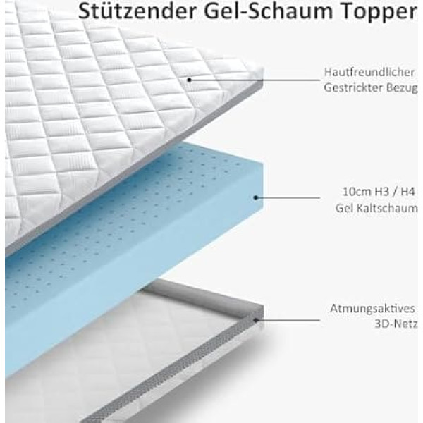 BedStory Gel Topper 120 x 200 cm H3/H4 Made of 10 cm Height Cold Foam Core, Breathable 3D Mesh Cover, Comfortable Mattress Topper for Box Spring Bed and Uncomfortable Beds Sofa Bed