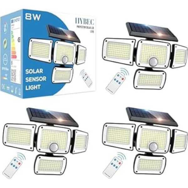 HYBEC - Solar Lamp with Motion Sensor, LED Spotlight for Outdoor Garden, Solar Lamp with Light (Pack of 3)