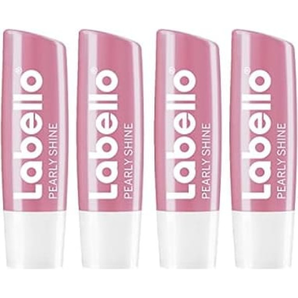 Labello Pearly Shine in a pack of 4 (4 x 4.8 g), lip care stick with a delicately shimmering finish, intensive lip care without mineral oils