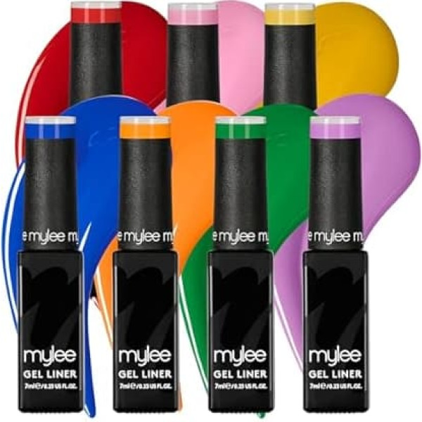 Mylee Liner Gel Nail Polish Set 7 x 7 ml [Kaleidoscope Kit] with Integrated Nail Art Brush - UV/LED Nail Art Manicure Pedicure for Professional and Home Use, Long Lasting and Easy to Use