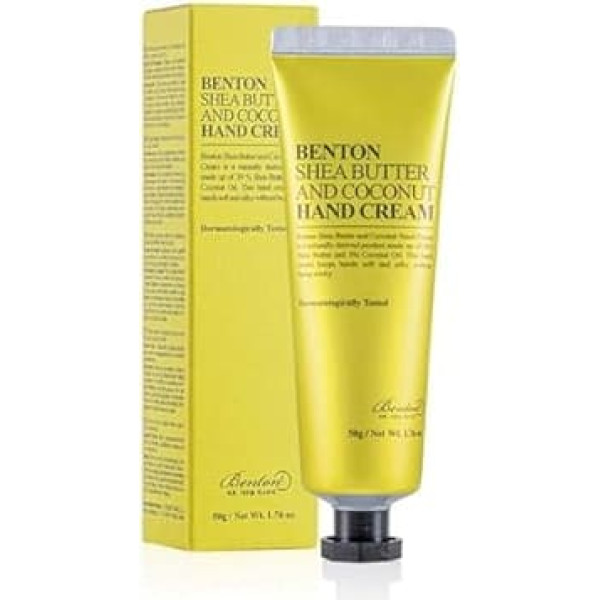 The hand cream with shea butter and coconut from Benton provides the hands with 20% shea butter and coconut oil. The hand cream absorbs quickly to moisturise and nourish skin and cuticles without feeling sticky or greasy. › See more product details; Product description Product Description Benton Shea Butter and Coconut Hand Cream 50g Safety Warning Read the instruction manual; Product description Product Description Benton Shea Butter and Coconut Hand Cream 50g Safety Warning Read the instruction manual; Product Description Benton Shea Butter and Coconut Hand Cream 50g Safety Warning Read the instruction manual