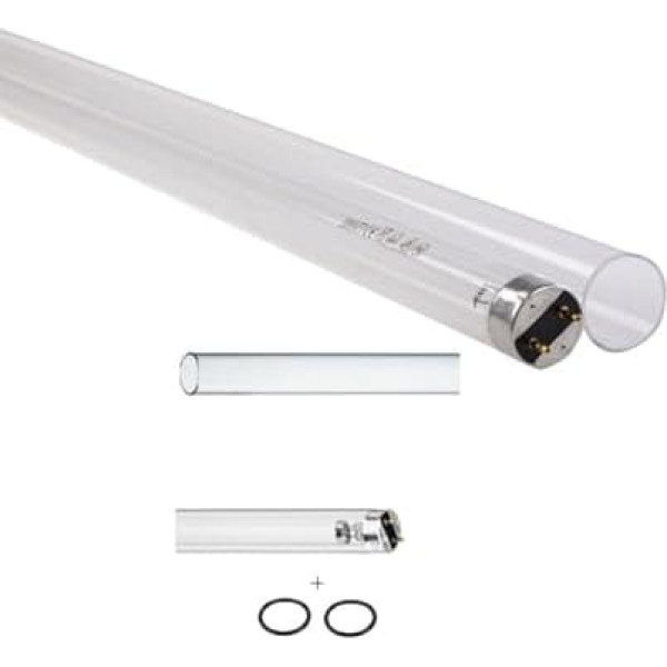 Efficient 30 W UVC lamp for pond clarifier - The Koi Herdecke UVC replacement lamp (30 watt) ensures clear pond water quality and is ideal for pond filters and UV water clarifiers. Durability and reliability - With an operating time of 8000 hours (approx. one season), this UVC lamp ensures constant performance and ensures long-lasting water clarification. Perfect fit and set contents - The set contains a 30 W UVC lamp, quartz glass (diameter 30 x 895 mm) and O-rings for easy installation. Compatible with many UVC pond clarifiers and water clarifiers. Optimal performance for pond filters - Ideal for use in pond clarifiers with 30 watt UVC and TL base. Perfect solution for fighting algae and harmful bacteria in pond water.