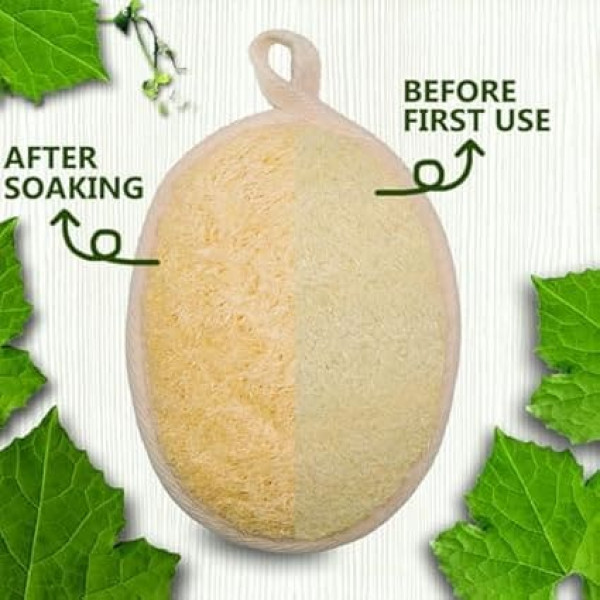 NATURAL MATERIAL The loofah sponge pad is biodegradable. It is an organic, environmentally friendly exfoliating body scrubber, both men and women can use it, suitable for shower and bathtub. 100% natural shower loofah sponge and towel cotton material HEALTHY CLEANSING Natural loofah exfoliating pads can remove dead skin and deeply cleanse the skin and wipe off excess oil from pores. Free the meridians and promote blood circulation. Its medicinal properties can reduce and sterilise inflammation, naturally improve skin health [Easy to use] Before bathing, immerse it in warm water to make it soft and use. The back is equipped with an elastic band and a comfortable terry back. Top lanyard is designed to facilitate storage and keep dry Size Description:Shower Loofah Sponge Pad Size:4.3-6.3 inch Package includes: 3 loofah sponge pads and 2 small hooks are free If you have any problems with our product, please feel free to contact us, we will reply you within 24 hours and solve all problems for you › See more product details; Product description Note: Before use: Soak in warm water for about 1-2 minutes to expand and soften. Rub with your Favourite soap-rich foam, can be used. After use: It is recommended to wash the loofah pad and hang it in a ventilated place to Dry and store for next use. Lifetime recommendation: To keep your skin healthy and avoid bacterial growth, it is It is recommended to replace it regularly every four to six weeks. If mould accidentally occurs, please replace it immediately.; Product description Note: Before use: Soak in warm water for about 1-2 minutes to expand and soften. Rub with your Favourite soap-rich foam, can be used. After use: It is recommended to wash the loofah pad and hang it in a ventilated place to Dry and store for next use. Lifetime recommendation: To keep your skin healthy and avoid bacterial growth, it is It is recommended to replace it regularly every four to six weeks. If mould accidentally occurs, please replace it immediately.; Note: Before use: Soak in warm water for about 1-2 minutes to expand and soften. Rub with your Favourite soap-rich foam, can be used. After use: It is recommended to wash the loofah pad and hang it in a ventilated place to Dry and store for next use. Lifetime recommendation: To keep your skin healthy and avoid bacterial growth, it is It is recommended to replace it regularly every four to six weeks. If mould accidentally occurs, please replace it immediately.