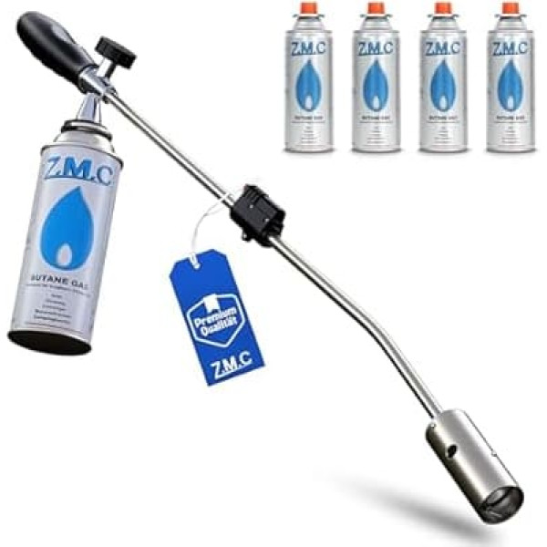 High flame output up to 1400 °C: the Z.M.C weed burner delivers 2.5 kW of power for effective weed removal on paths, patios and in the garden. Thanks to strong heat, you can eliminate moss and wild growth without chemicals - quickly and efficiently. With piezo ignition - no lighter required: convenient and safe lighting thanks to integrated piezo ignition. Simply insert cartridge, press the button - ready to go. Ideal for amateur gardeners, campers and DIY enthusiasts. Versatile use: whether weeds are flaming, barbecue lighters, heating wood or roofing work – the device is flexible. Perfect for garden, yard, campsite or craft projects. Lightweight and ergonomic: at only 282 g, the burner is extremely handy and comfortable even during prolonged work. Dimensions: 80 × 3 × 9 cm – Compact for easy storage and carrying around in the garden or outdoor use. Robust workmanship and compatibility: the heat-resistant burner head made of aluminium is durable and resistant. Compatible with 8oz butane gas cartridges (EN417) Gas consumption: approx. 450g/h Includes 4 gas cartridges in a set. › See more product details