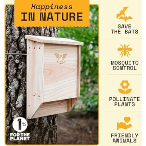 75 clubs can live in this 2-chamber bat house: modeled after our proven MTBC certified bat box, these large clubhouses have an efficient two-chamber design that provides an ideal sleeping place with excellent conditions for bats Say goodbye to mosquitoes: effective in eliminating mosquitoes. and can withstand most weather patterns such as snow, rain, cold and heat Cedar can withstand any climate. Handcrafted from high quality cedar wood, this outdoor bat house keeps rain and snow out and will last for years as cedar is naturally resistant to rot and rot. 6 Easy Steps to Install - This bat house kit comes with stainless steel hardware, easy to install and can be attached to houses, trees and other places International products have separate terms, are sold from abroad and may differ from local products, including fit, age ratings, and language of product, labeling or instructions. › See more product details; Product description Our high-quality 2-chamber bat houses are modelled on our proven and successful triple chamber nursery bat boxes. Our bats need your help! Built to the same high standard and constructed for success, our bat houses provide a safe haven for these important creatures. As a family business, we are passionate about helping you enjoy nature through bat protection. We are constantly improving our design and together we will make the world a better place.; Product description Our high-quality 2-chamber bat houses are modelled on our proven and successful triple chamber nursery bat boxes. Our bats need your help! Built to the same high standard and constructed for success, our bat houses provide a safe haven for these important creatures. As a family business, we are passionate about helping you enjoy nature through bat protection. We are constantly improving our design and together we will make the world a better place.; Our high-quality 2-chamber bat houses are modelled on our proven and successful triple chamber nursery bat boxes. Our bats need your help! Built to the same high standard and constructed for success, our bat houses provide a safe haven for these important creatures. As a family business, we are passionate about helping you enjoy nature through bat protection. We are constantly improving our design and together we will make the world a better place.